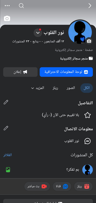 📌متاح تغير اسم الحساب 📌لا يوجد اي انتهاكات فى الحساب 📌ادخل رقم الوتساب الخاص بك عند الشراء فى الخانة الفارغة ⬇️صورة الحساب ![]() رابط الصفحة: https://www.facebook.com/profile.php?id=61587477896275 |